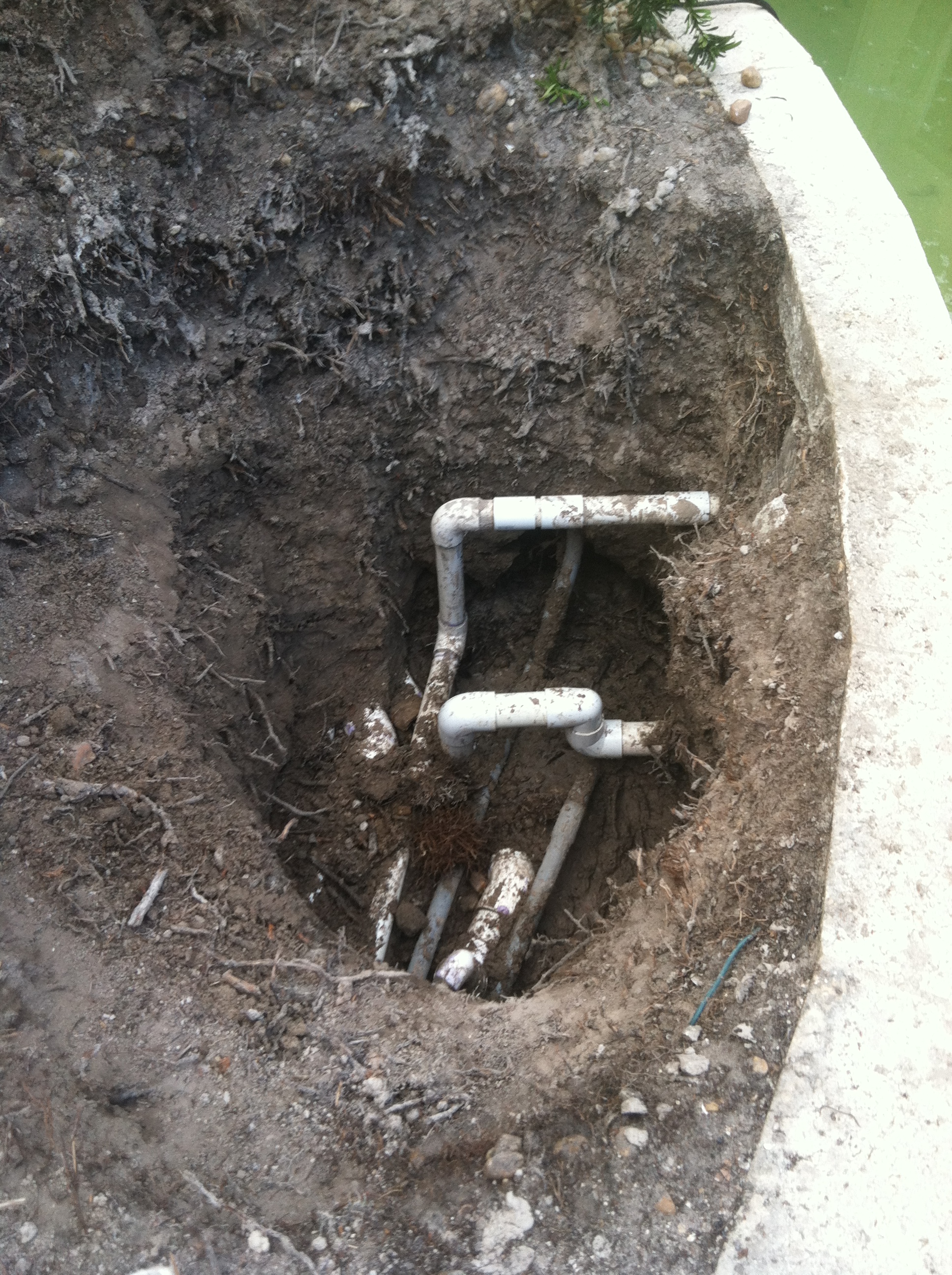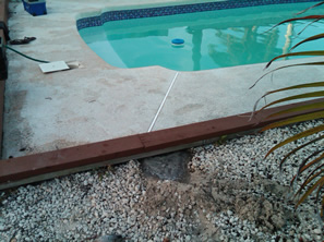 Photos Series Water puddled (rare to see above ground) SeriesSlight hole with pool in background SeriesDug up and exposed Series - Diamond BritingBefore Series - Diamond BritingFully Prepped Resurface Series - Diamond BritingAfter Acid Washes Light Repair Heater Repairs